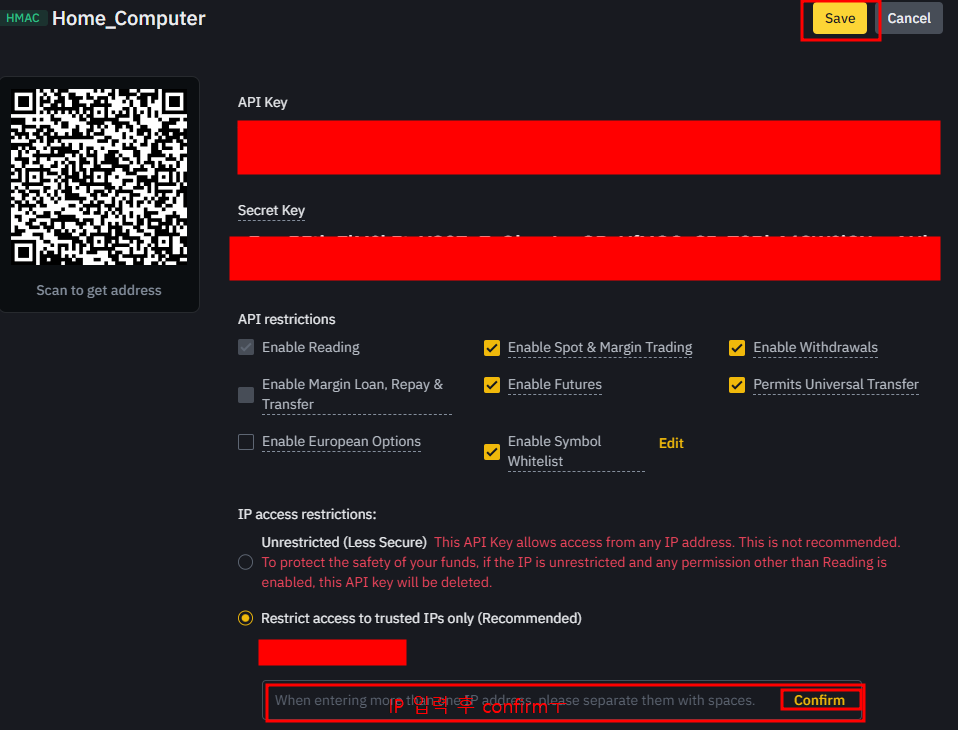 본인의 IP Address를 확인하고 IP 등록을 해주셔야 선물/입출금 등등의 보안 해제 됩니다.